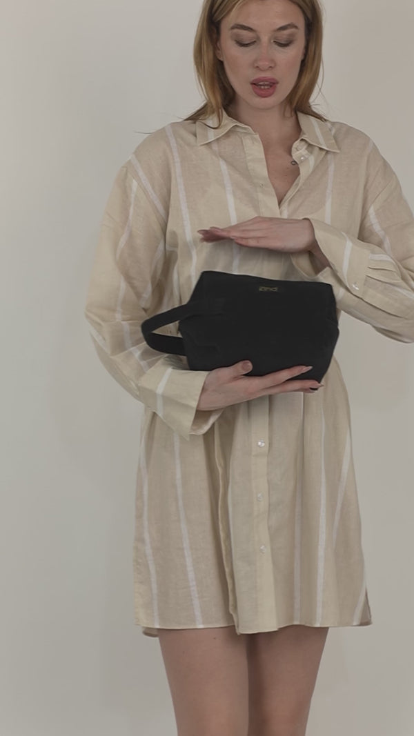 Made from soft, upcycled corduroy in classic black, it fits perfectly into your tote or sits confidently on its own. Whether it’s skincare, cables, or your favourite perfume stick — this pouch keeps your everyday feel collected.