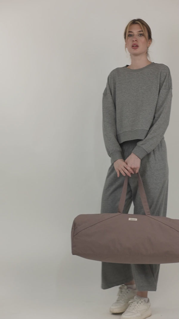 Crafted from upcycled canvas in a muted rose-pink tone, it’s light, durable, and made to carry your yoga mat plus the little things that complete your practice. Whether you're walking into a studio or rolling it out on the terrace, this bag brings intention to every move.